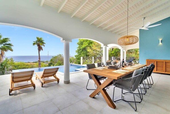 Discover the luxury of Villa Heros Sabadeco on Bonaire, featuring a private infinity pool and breathtaking sea views. Perfect for divers and sunset enthusiasts, this villa offers comfort and privacy for 8, close to Kralendijk and famous dive sites.