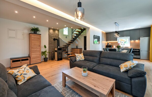 Escape your everyday life and find peace and quiet in this wonderful holiday home. The stylish furnishings and fantastic facilities offer you maximum comfort. Relax on the sofas in the living room or unwind in the beautiful bedrooms on the 1st floor. The rooms in this inviting house will fulfil all your wishes.