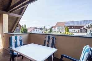 From the apartment, you can find a bakery after a 15-minute walk (1.2 km) and supermarkets, shops and cafés, as well as the train station and restaurants are located in the centre of Kressbronn, which is a 3-minute drive (1.8 km) away. The nearest beach, Strandbad Kressbronn, is a 9-minute drive (3.5 km) from the apartment, where you can swim in the clear blue water in the midst of a fantastic lake and mountain panorama. The ferry terminal is a 7-minute drive (2.8 km) from the property, and you can get to the pretty town of Friedrichshafen in 17 minutes by car (13 km) or 10 minutes by train. The island Lindau with its charming old town centre can be visited after a 20-minute drive (12.5 km), and Bregenz is located a 30-minute drive (29 km) across the Austrian border. The beautiful Lake Constance region offers plenty of opportunities for hiking and cycling, and in winter, you can also go skiing only a 25-minute drive (25.5 km) away.