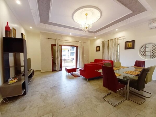Kribi's warm atmosphere surrounds this lovely apartment, perfect for a home away from home. Enjoy a dip in the swimming pool or stroll along the beach, then unwind with television and internet access in your private space.