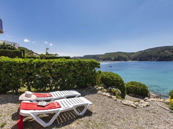 Montgo: Hillside complex "Port del Rei I", 3 storeys, semi-detached. On the outskirts, 4 km from the centre of L'Escala, on top of a hill, excellent location: right in the centre but still quiet, 50 m from the sea, 50 m from the beach, direct access to the beach, in a pedestrian area. Private: terraced garden (not fenced), parking at the house, single garage. Supermarket 50 m, shopping centre 2 km, restaurant, bar 50 m, bus stop 4 km, railway station "Figueres" 30 km, sandy beach "Platja de Cala Montgó" 50 m, rocky beach "Illa Mateua" 600 m, diving center 2 km. Sports harbour 2 km, sailing school 2 km. Nearby attractions: Skydive Empuriabrava 23 km, Parc Aquatico Aqua Brava 27 km, Museo Dalí Figueres 26 km, Pitch and Putt Gualta 15 km, Casino-Festival Perelada 30 km, Ruines Greco-Romanas en Empuries 5 km. Please note: car recommended. Property ref. ES9425.906.1 is situated on the same property.