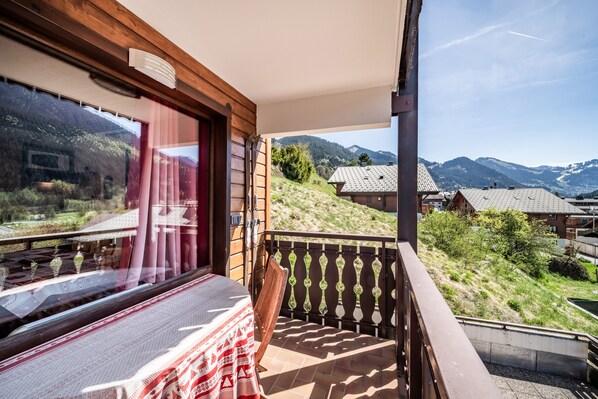 Step outside to your private balcony offering mountain views, perfect for enjoying the peaceful surroundings with minimal traffic. The apartment provides shared ski-in/ski-out access and is just a 5-minute walk from the ski slopes, with the vast Chatel - Portes du Soleil ski area only 10 minutes away by car.