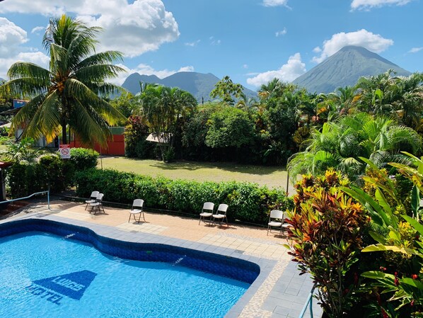 Location in La Fortuna was good, but that was about it. The room was hot and muggy, mainly because the air conditioner was old and broken. There was only one knob for the 3-different controls, so I had to pry the knob off every time I wanted to adjust the speed or temperature. There was no shower head, so taking a shower was like standing under a garden hose. There were no towel racks in the bathroom either, so there was no place to hang your wet clothes. Also, there was no soap or shampoo in the bathroom. What kind of a hotel doesn’t even provide small vials of shampoo?!!? The owner was very visible, and he kept telling me how he was going to get all new air conditioners and upgrades for the rooms. Well, that obviously didn’t help our current situation. The WiFi was extremely weak, and it only worked in the rooms, not in the common area. Finally, I realize that I was in a foreign country, but the person who was at the front desk most of the time couldn’t even speak English. That made it very difficult to ask for recommendations for local restaurants, or to have someone call the Tour Companies to confirm reservations and pick-up times. Honestly, the pictures on their website are extremely misleading. Until all the improvements are completed, I would avoid this hotel.