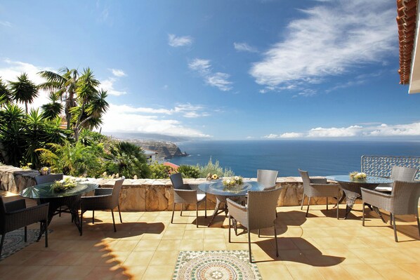 Outdoor dining - Holiday Apartment "En Jardín Mariposa" with Sea View, Shared Pool & Wi-Fi (La Matanza de Acentejo)