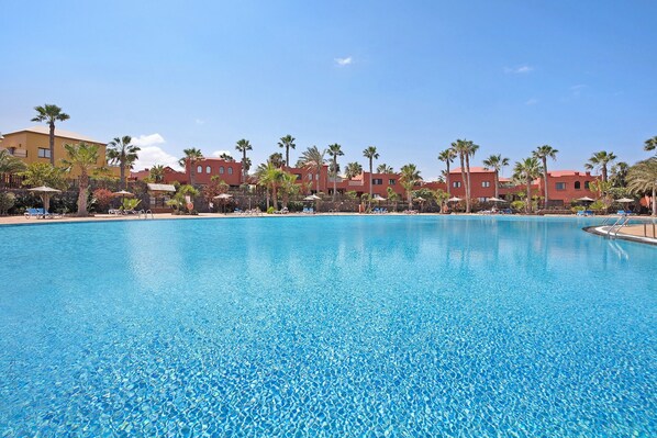 Outdoors, you can relax in the private garden and on the open terrace with sea views overlooking the famous Corralejo Dunes Natural Park. The large outdoor saltwater communal pool is open year-round and suitable for both adults and children. An outdoor shower is also available.