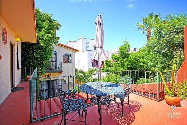 We stayed in a “Mexican casita” and enjoyed a beautiful patio with our family of 4. The decor was lovely. The owners are in the main house and we stayed in the back house and never saw owners. The property is safe and close to the Main Street (Paseo Alvaro Obregón) and accessible to wonderful restaurants. We also enjoyed bird watching - hummingbirds and doves. The top units (2 - 1 bedrooms) capture noise from the Main Street (noise rises) so if you are a sensitive sleeper, stay in the Firenze or Romeo/Juliet bedrooms. Instructions were very clear for checkin and checkout. I have attached fotos.Thank you!!!!