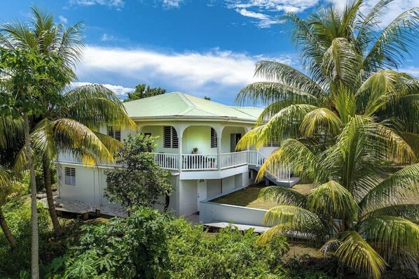 Unwind on the beautiful front porch, where you can soak in stunning views of the ocean, mountains, and surrounding coconut trees. The master bedroom features a balcony and an ensuite bathroom for added privacy, while two additional bedrooms share a second bathroom, making it perfect for families or groups. Experience the ultimate retreat with a serene atmosphere and breathtaking natural views