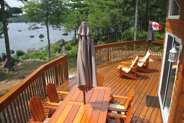 Outdoor dining - House Eagle Cove - Cottage right on the shore of Ponhook Lake (LaBelle)