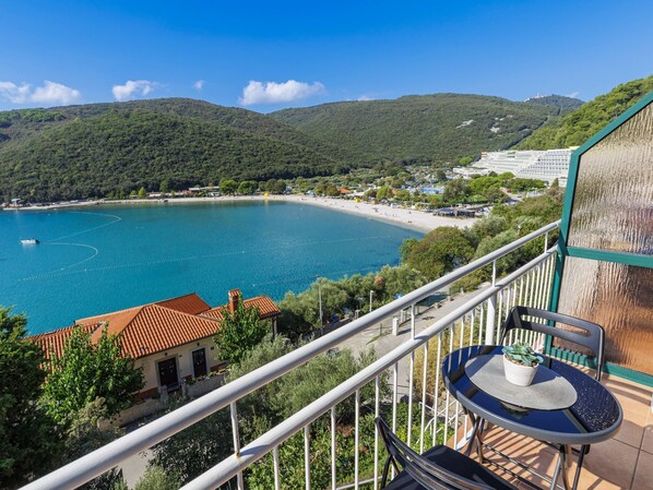 "Boris", 3-room apartment 45 m2 on 1st floor. Object suitable for 4 adults. Practical furnishings: 1 room with 1 french bed. 1 room with 2 beds. Kitchen-/living room (oven, dishwasher, 2 ceramic glass hob hotplates, microwave, freezer, electric coffee machine) with dining table and satellite TV. Exit to the balcony. Shower/WC. Electric heating, air-conditioning. Balcony 5 m2. Balcony furniture. View of the sea. Facilities: washing machine. Internet (WiFi, free). Please note: non-smokers only. Private entrance. HR2900.617.1