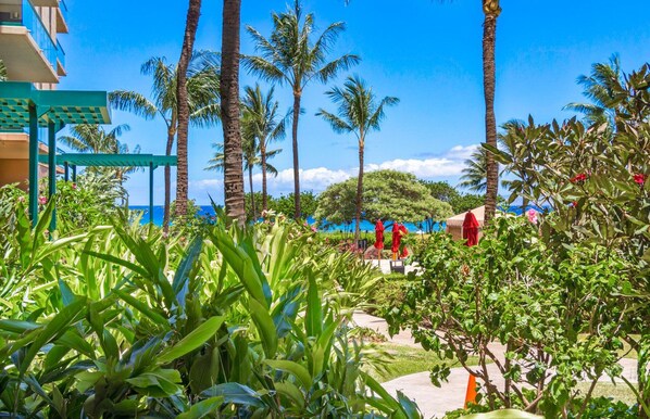 Property grounds - Maui Resort Rentals: Honua Kai - 4 Total Bedrooms, Ground Floor Interior Courtyard, Steps to Pools, Beach, BBQs! (Lahaina)
