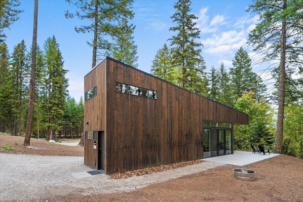Escape to the serene woods of Stoner Creek Cabins, where modern comfort meets nature's tranquility. The Clark Fork cabin offers a peaceful retreat with its creekside location, patio, fire pit and sliding doors that bring the outdoors in. With a fully equipped kitchen featuring a Nespresso machine and private laundry facilities with complimentary pods you'll feel right at home.