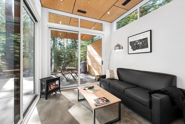 Step into the serene ambiance of The Yellowstone at Stoner Creek Cabins, nestled on ten wooded acres. Relax creekside, surrounded by nature's soothing sounds and modern comforts like a fire pit and patio. With an open concept kitchen and living area, you'll feel right at home with amenities such as a full-size refrigerator, Nespresso coffee machine and private washer/dryer.