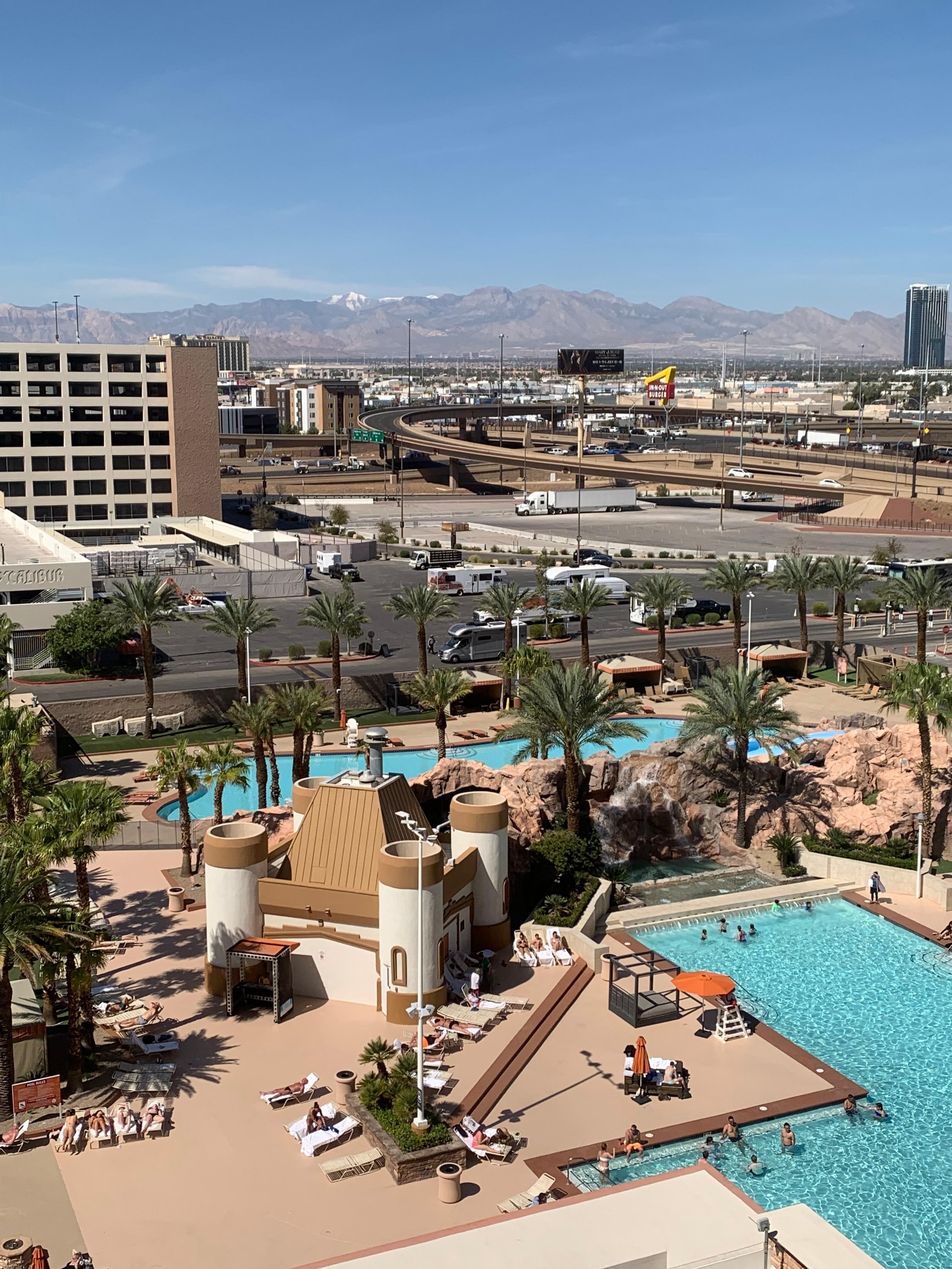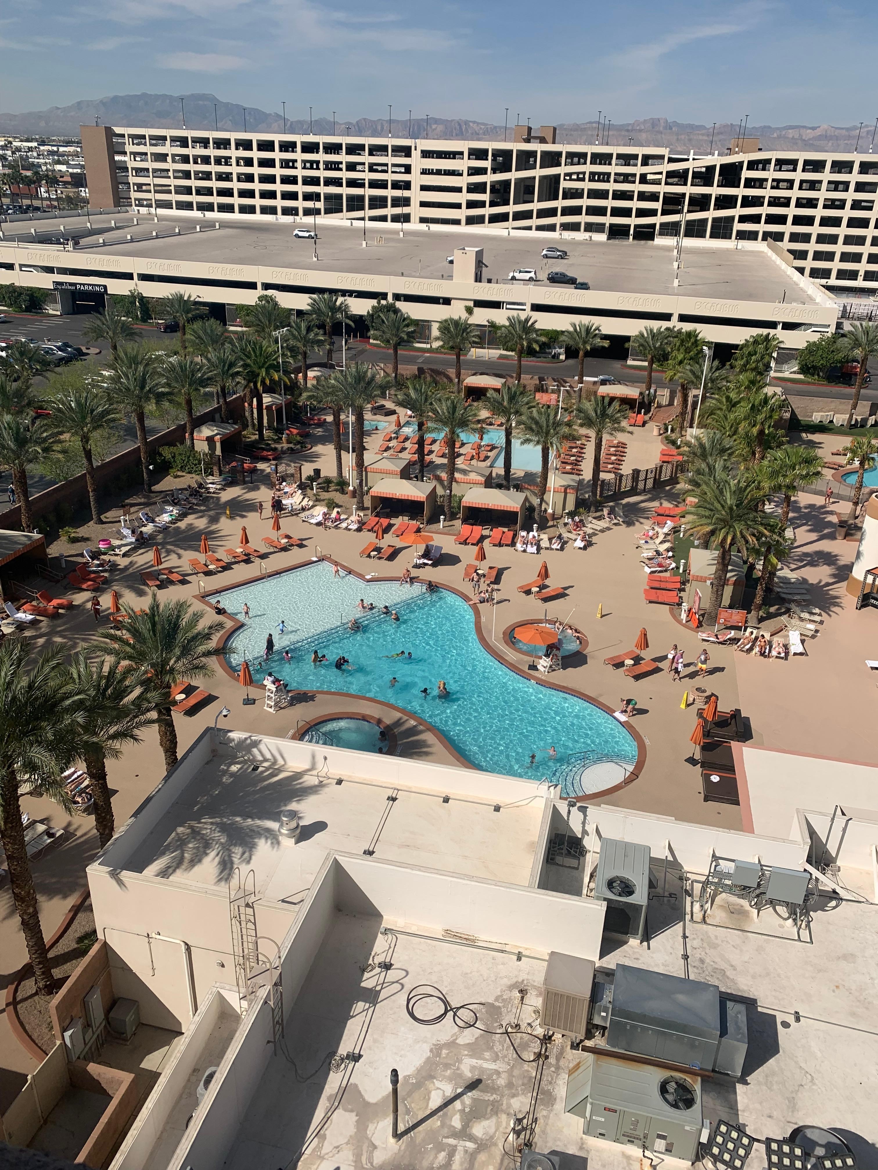 Room was very clean and the beds were comfortable. Our flight was canceled and they were very helpful in getting us an extra night!! We sat here every time we come to Vegas.