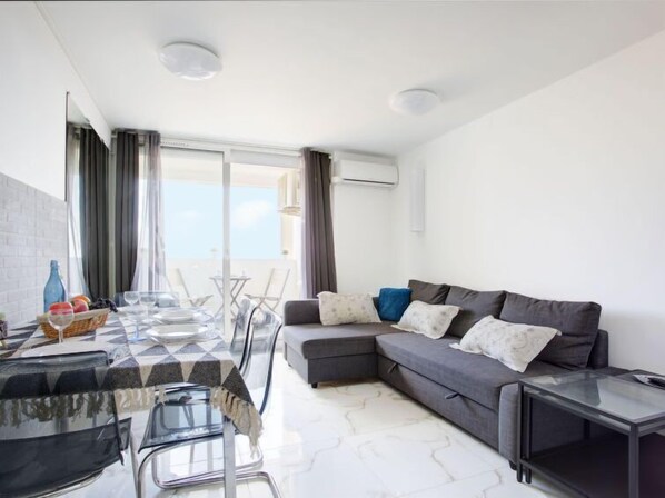 Appartement propre et fonctionnel Un seul bémol, la cafetière qui aurait besoin d'être changé Le canapé est confortable Le plus, la clim et la plage à 50m