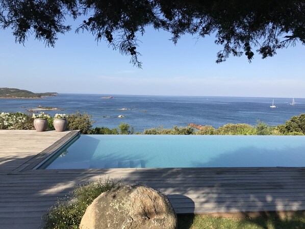 A large garden descends by terraces fitted out on a large heated infinity pool (17 m. X 5.30 m) and a pretty sandy beach accessible by private shaded path of 150 m.