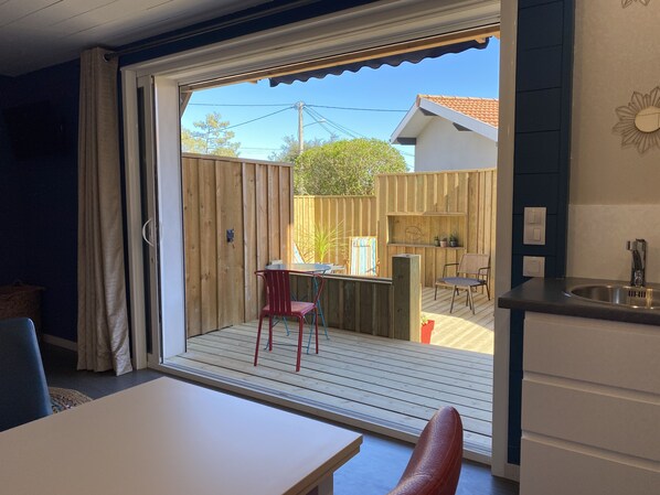 Exceptional location for this new accommodation with wooden terrace, completely independent in the popular oyster and lighthouse district, protected and classified site.