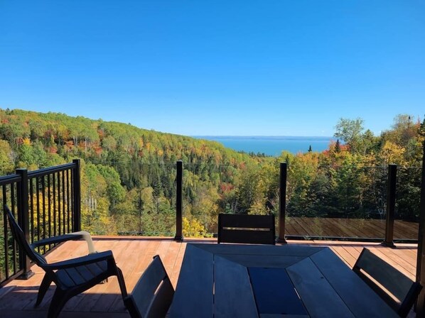 In addition to the view, you can enjoy the relaxing sound of the Boudreault River. Everything you need for an unforgettable stay can be found here! BBQ, board games, fully equipped kitchen, outdoor fireplace and much more.