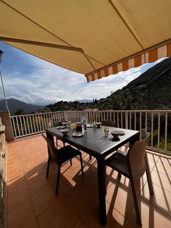 Outdoor dining - CASA PURRUSSONI Apartment in stone house (Levie)