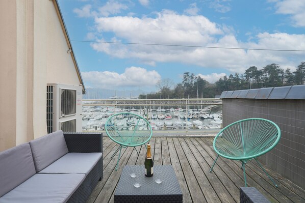 Two terraces, perfect for enjoying summer evenings and admiring the view of the harbor.