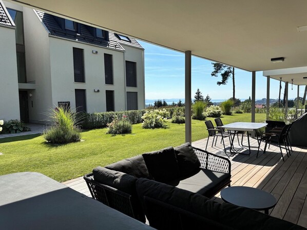 Outdoor dining - Luxuriöse Ferienwohnung mit Seeblick und Whirlpool in Lindau (Lindau (Bodensee))