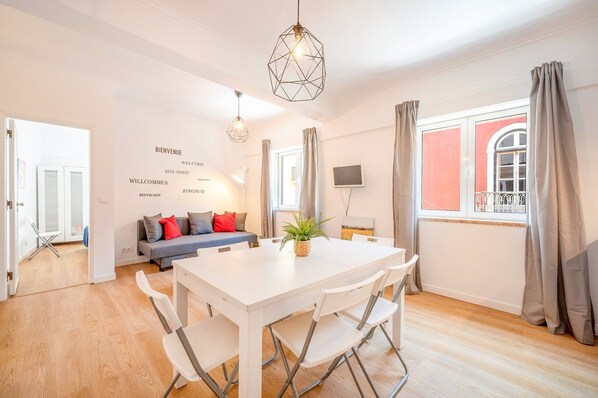 Designed with an open floor plan, the apartment offers a comfortable living room area with a sofa bed where you can relax and enjoy your favourite shows on the TV. There is also a dining table that can accommodate up to six people.