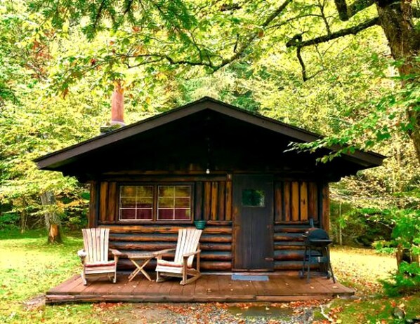 What makes our log cabins unique? Wood burning fireplaces in every cabin with the Salmon Hole Brook that runs by each cabin and the outdoor fire pits. Listen to the soothing water as it rushes over the rocks. You can stick your feet in to cool off, sit alongside while watching and listening to the babblings of the brook.