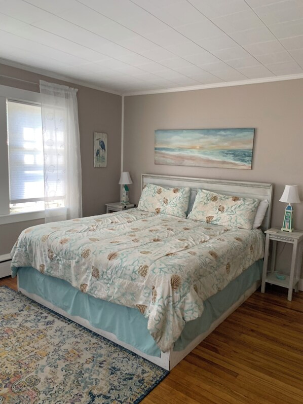 The front yard is huge and is very private, the back yard is bordered by a stonewall and tree line for privacy and there is a sheltered outside hot & cold shower. The master bedroom has a king size bed, two closets, and TV. The second bedroom has a bunk bed with a full size mattress on the bottom and a twin mattress on the top. There are 2 bathrooms, one with a tub/shower and the other with a shower. The basement has a washer and a dryer along with folding tables. The floors are hardwood and have been refinished and the kitchen which has ceramic tile floor. You can see the town beach from the house and there is also a town 'dog beach' on Sakonnet point which you can use.