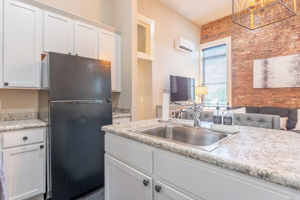 The Officer-Chic 1 bedroom on the Historic Square provides everything that you need. Stay connected with in-room WiFi.