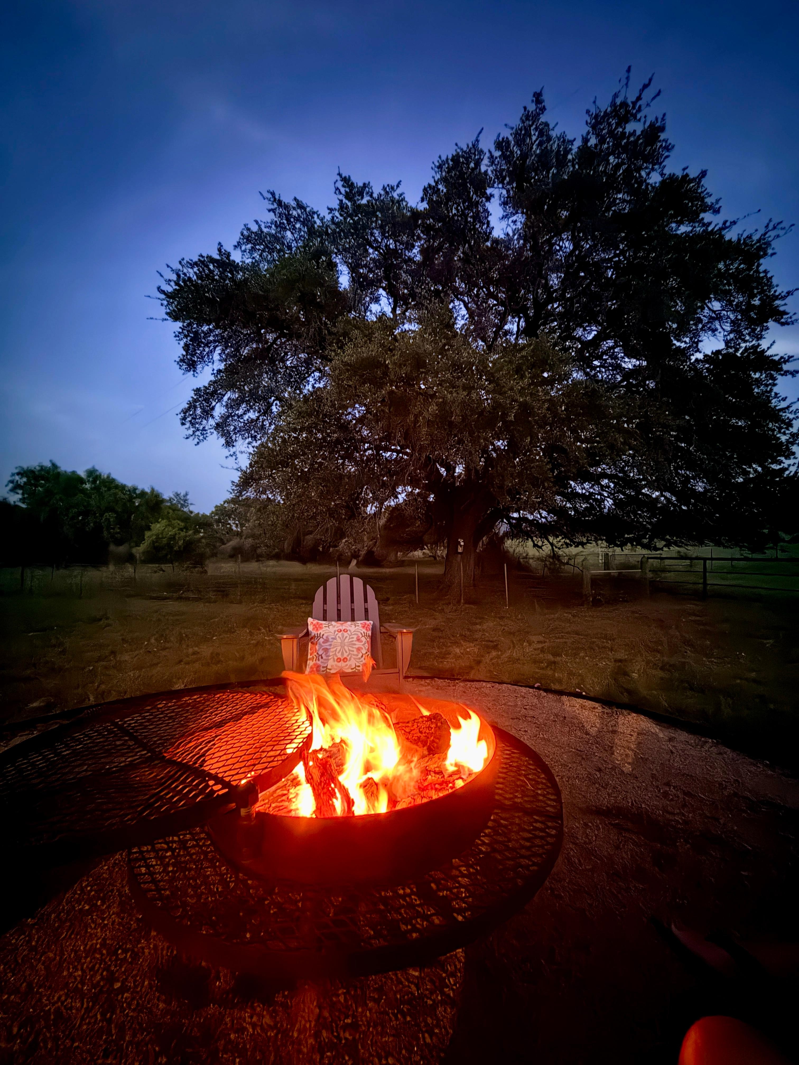 The true gem, though, is the backyard centered around a massive oak tree. It feels like your own private bird and wildflower sanctuary. Sitting outside by the fire at night was unforgettable—we heard coyotes in the distance and even a bobcat under the stars. It was truly magical.