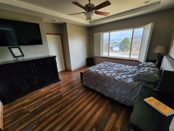 Nestled in the Bitterroot Valley, The Last Best Place offers serene mountain and valley views. Unwind by the slate fireplace or enjoy a glass of wine on the back patio with Adirondack seating and a built-in firepit, surrounded by cottonwood trees. A propane grill and outdoor dining let you savor every moment while soaking up nature's beauty.