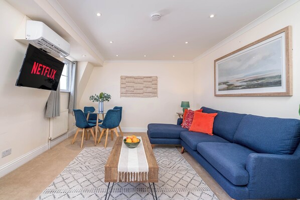 From the top floor of this modern flat, soak up the city views and unwind on a cozy balcony. Stroll through charming high streets lined with restaurants, cafes, and antique shops or take a short walk to beautiful Battersea Park along the River Thames.