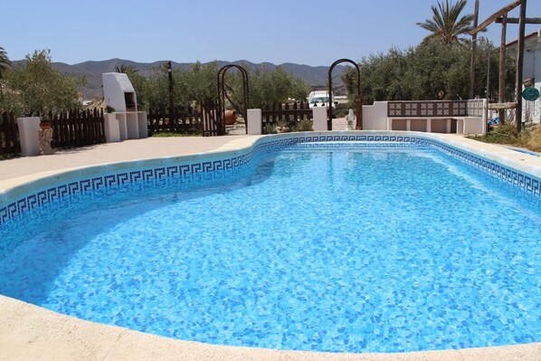 Outside Las Casas Cuevas, is a 20sqm covered pergola with a large dinning table, seating up to twelve plus people. The area is surrounded by olive trees and plants. PLEASE RESPECT NATURE.