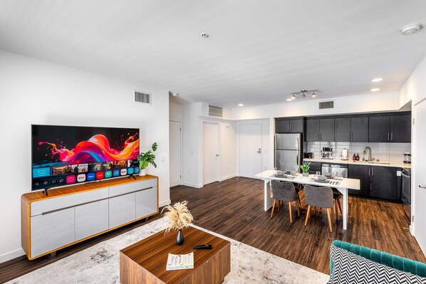 Close to Hollywood Roosevelt Hotel and TCL Chinese Theatre, Hollywood Skyline Retreat • Parking • Gym provides amenities such as laundry facilities.