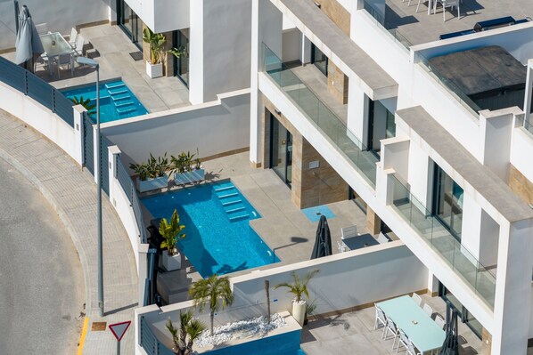 Spacious new-build villa with private pool, just 15 minutes from the beautiful Costa Blanca beach and close to stunning golf courses. Enjoy your holiday in this modern, bright villa in Los Montesinos.