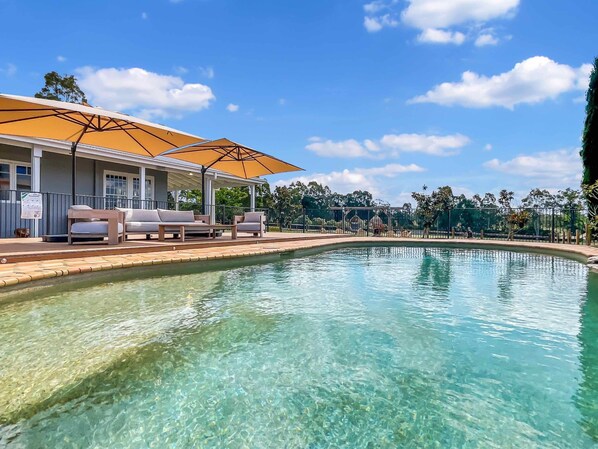 Relax, unwind and play at Nine Hunters. This luxurious and uniquely styled home is simply stunning and is akin to staying at your very own resort. Centrally located in Lovedale, Nine Hunters features 4 bedrooms, 5 bathrooms and large, airy living spaces; just perfect for groups of up to 13 guests. There's a large open fireplace indoors and fire pit outdoors for winter warmth and fabulous pool for a summer time splash. You'll be close to many of the must do attractions in the valley but with so much to do at Nine Hunters, you'll have to drag yourself away!
