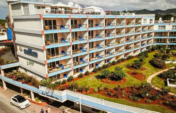 Royal Islander Club La Terasse sits on the white sands of Maho Bay, offering a peaceful getaway with private balconies amid lush tropical gardens. Guests can relax by the pool, soak in the hot tub, or take a short walk to Mullet Bay Beach. In-room WiFi keeps everyone connected.