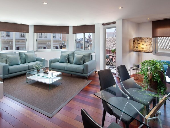 The INMálaga Granada 3 has a modern style that we're sure you'll love. Wood floors and air conditioning centralized, cold and heat. It has 3 bedrooms, 2 bathrooms, one of them in suite, living room, fully equipped kitchen and 2 balconies with incredible views of the city. Also, you will be provided with high quality linens and towels. Apartment has free Wi-Fi and a flat-screen TV in the living-room and in the main bedroom.