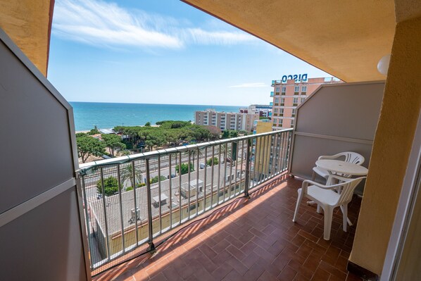 Its bright and welcoming interior features a spacious living-dining room with wifi, a fully equipped independent kitchen, two comfortable bedrooms and a complete bathroom. But without a doubt, the great protagonist is its balcony with impressive views of the sea and the pool, ideal for breakfast in the sun, relaxing with the sea breeze or contemplating unforgettable sunsets.