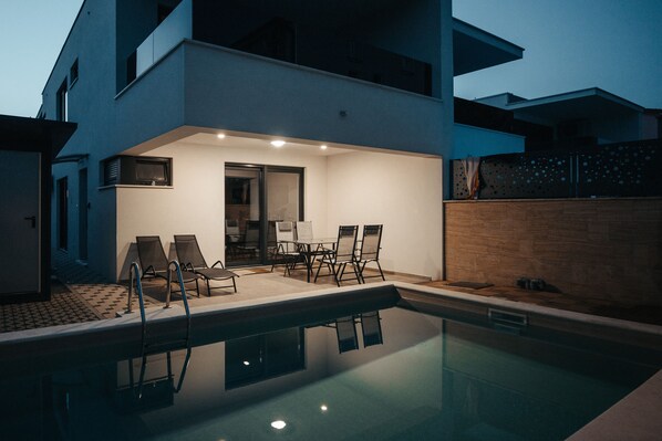 5* luxury family vacation with priv. Saltwater pool, barbecue, sun & sea view 4+2