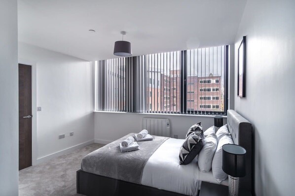 In the heart of Manchester, this stylish apartment in Old Trafford offers a comfortable stay with modern fixtures and fittings. Enjoy natural light pouring through large windows, a fully equipped kitchen for home-cooked meals, high speed broadband throughout, and fluffy towels at your disposal.
