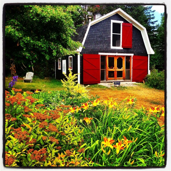 The grounds are lovely and the trees put on a colourful show in fall. This home was built in the 1950’s, but has seen many improvements over the years; there's a renovated bathroom, hardwood floors, a fully equipped kitchen (with tile backsplashes executed by the potter). There are also a deck for BBQ’s, a living room, dining room, and a screened veranda, which is perfect on a summer night.