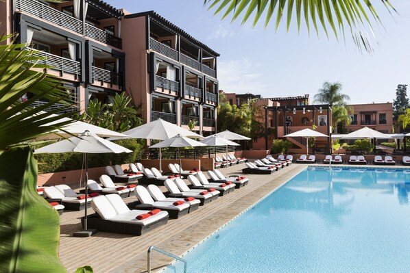 Discover a peaceful retreat with verdant gardens, a rejuvenating spa, and an 18-hole golf course amid beautiful landscapes in Marrakech.