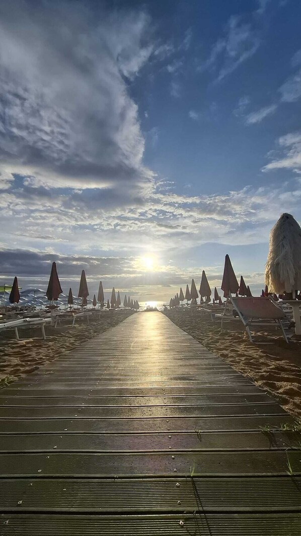The location is a real advantage: the beach is just a one-minute walk away, with both equipped beach clubs and free areas. Right below the apartment, there is a seaside bike path that runs along the Adriatic coast, ideal for cycling, walking or jogging.
