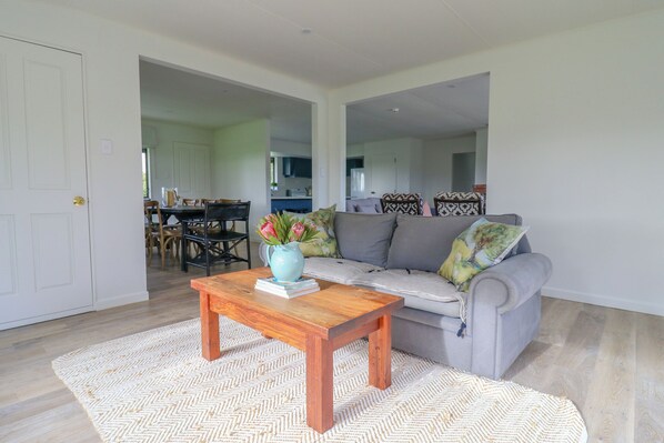 Escape to this newly renovated home with 4 bedrooms and a fully equipped kitchen perfect for outdoor entertaining. Gather around the fireplace, enjoy BBQs or stroll down to MOOMAA Cafe & Design Store, offering catering and meals with a discount for guests.