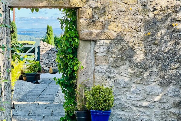Walk through the pretty gravelled courtyard to reach your home from home, passing flower-filled baskets, a bubbling water feature and pausing to take in the ever-changing view over Bonsall Moor and the valley.