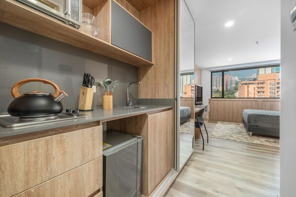 Go Living 1013 · Stylish Loft apt, kitchenette & AC and coworking