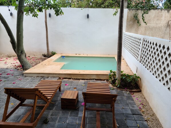 Enjoy this new, quiet and central apartment called Jícara, with a pool and large gardens, located in Chembech, just 10 blocks from the main square. It has a dining room, fully equipped kitchen, private yard, and a bedroom. 377 ft2 of comfort. Find all kinds of commerce around, as well as parks, flea markets, snacks and more. Live Mérida as if you were a citizen assisted by us when you need something. We help you acquire tours, car rentals and advice for your stay.