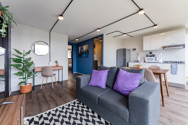 In the heart of a vibrant neighborhood, this inviting loft at Virtual Homes offers comfort and convenience. With a cozy double bed, fully equipped kitchen, and Smart TV in the living room for movie nights or work sessions. Enjoy premium amenities like 24/7 surveillance for peace of mind, an on-site gym to stay active and paid laundry facilities.