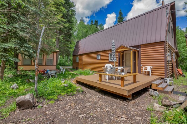 Newly remodeled five bedroom family cabin accessible year round up Snake Creek Canyon close to recreation with all the comforts of home. Perfect for a couple get away, family, or skiers. Internet, Satellite TV and Nintendo game system. Two bathrooms with five bedrooms including a plush king, comfortable queen, two double beds upstairs and three trundle beds in all. Fully stocked kitchen, internet, Satellite TV, and two DVD players with flat screen TV, Cd's plus 1.5 mbs internet plus Nintendo game system.