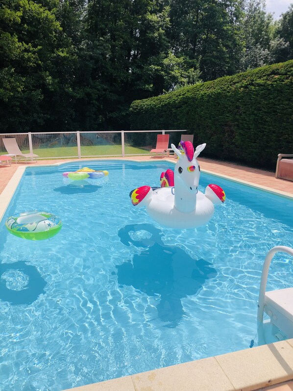 Nous avons passé des vacances merveilleuses, le gite est spacieux et tres bien equipe. Nous avons profite du tres beau jardin et de la piscine, plein de jeux à disposition : petanque, billard, ping pong. La piscine est tres grande et bien securisee pour les enfants. Denise et Adrien sont de charmantes personnes, tres accueillantes et chaleureuses, nous avons eu un panier rempli de pain frais et d'une bonne bouteille à notre arrivee !!! Ils ont vraiment l'art de recevoir ! What a lovely place !